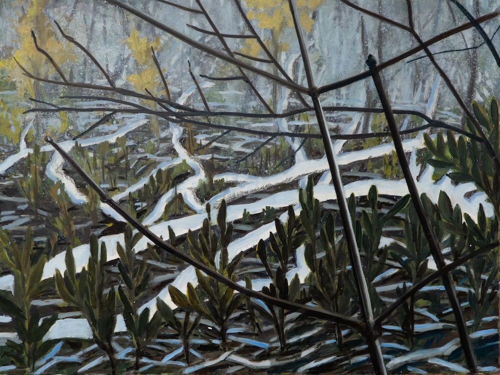 Elaine Miller (Chicago, IL) works through painting to navigate the distance between the roar of our world and the stillness of nature. The traditions of the landscape genre are used to express the many layers of reality and our deep interconnections.