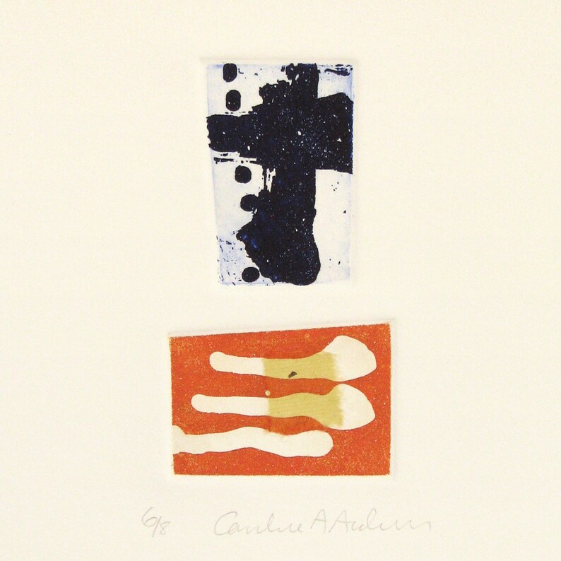 Caroline Anderson, “Crossing Water” aquatint and chine collé on BFK
